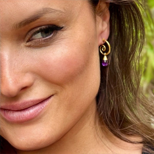 "Curlicue Drop" Earrings (Amethyst, 18k, 22k Gold)