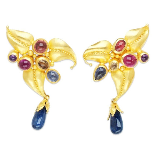 "Ophelia" Dangle Earrings (African Sapphire, 18k, 22k Gold)