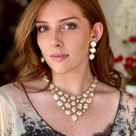 "Gabriella" Button Earrings (Mabe Pearl, 22k, 18k Gold)
