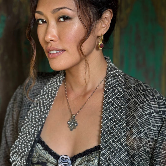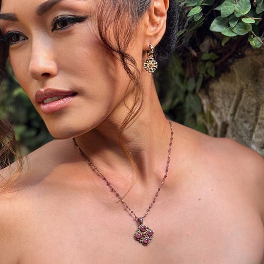 "Lotus" Drops for Hoop Earrings (Ruby, 18k Gold, Oxidized Sterling Silver)