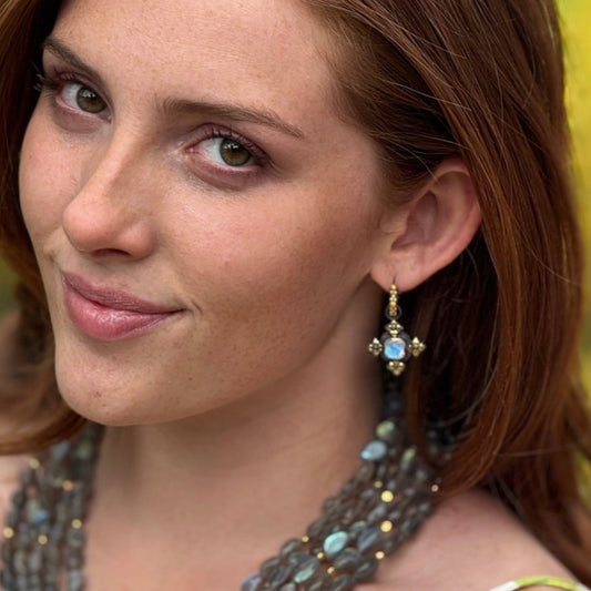 "Malta" Drops for Hoop Earrings (Moonstone, 18k Gold, Oxidized Sterling Silver)