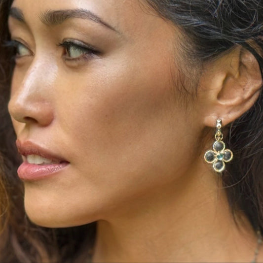 "Malta" Drops for Hoop Earrings (Tanzanite, 22k Gold, Oxidized Sterling Silver)