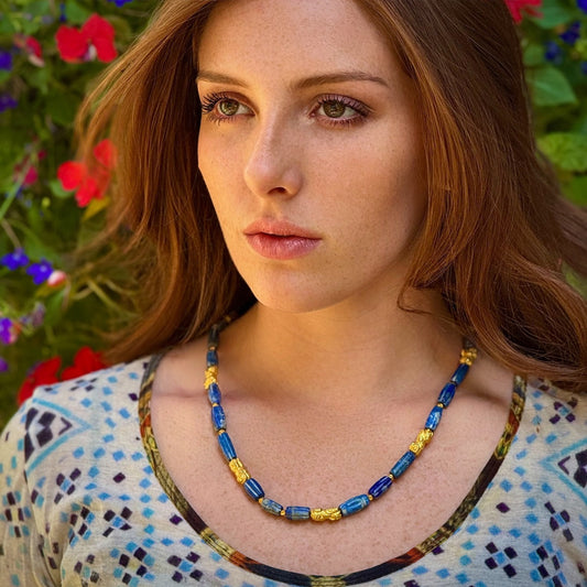 "Khmer Lola" Necklace (Lapis Lazuli, 18k, 22k Gold Beads)
