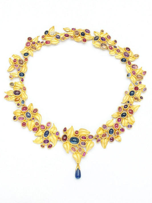 "Ophelia" Necklace (Multicolor African Sapphire, Ruby, 22k Gold)