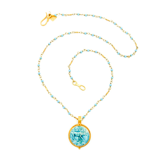 "Taurus" Pendant (Roman Faience Ceramic Cameo, 22k, 18k Gold)