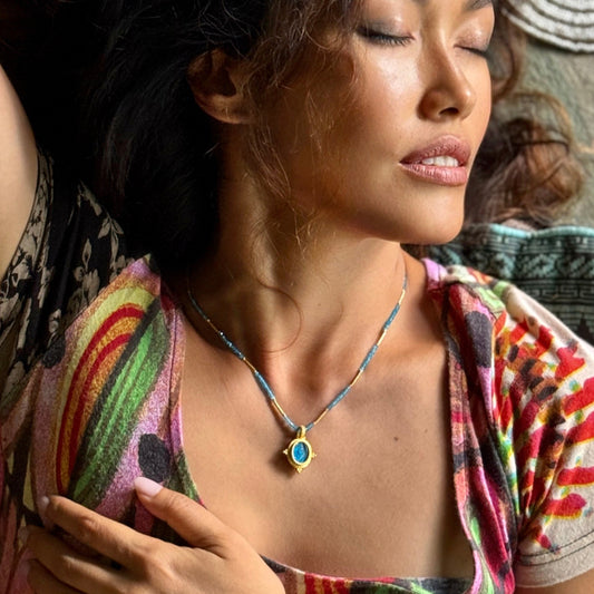 "Sharon Trio" Pendant (Blue Venetian Murano Glass, 22k Gold)