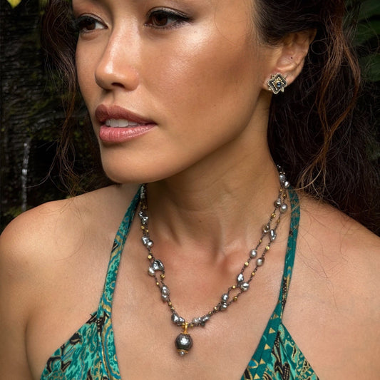 "Christine" Pendant (Tahitian Black Pearl, 22k, 18k Gold)