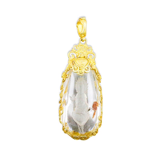 "Seated Lotus Buddha" Pendant (Hand-Carved Quartz Crystal, Ruby, 18k, 22k Gold)
