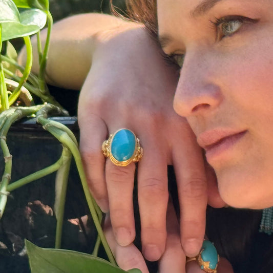 "Fleur de Lys" Ring (Sleeping Beauty Turquoise, Diamond, 22k Gold)