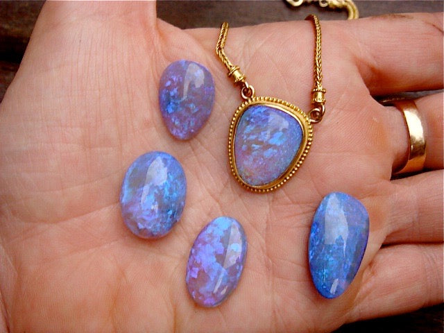 In December 2005, Carolyn opened Chahaya, a fine jewelry store in Santa Barbara, across the street from the spot where she encountered her ex. On the third day of business, Lucy Brown, an illustrator Carolyn worked with in her advertising years came in and asked how she started in jewelry design. Carolyn said “That’s a great Serendipity—have a seat, and I’ll tell you the Story of the Stolen Opal”, and proceeded to share the timeline. “Oooh”, Lucy said “I absolutely LOVE opals!” After answering Lucy’s many probing questions, she revealed that she had an opal pendant of that exact description, given to her by a friend in 1990 (the year it was stolen). Fate would have it, that her friend had received it from a new suitor (the ex, of course!) as a gift, but never felt “right” about it, so she gave it to Lucy, who was about to be married. Lucy shared that she thought the opal was bad luck (since her marriage ended quickly), so she only wore it once and it sat in her bathroom drawer for years without attention… She brought it to Carolyn on the evening of January 3 rd , 2006. “I burst into tears”, Carolyn says, “”It was like finding my kidnapped child after 15 years!”.