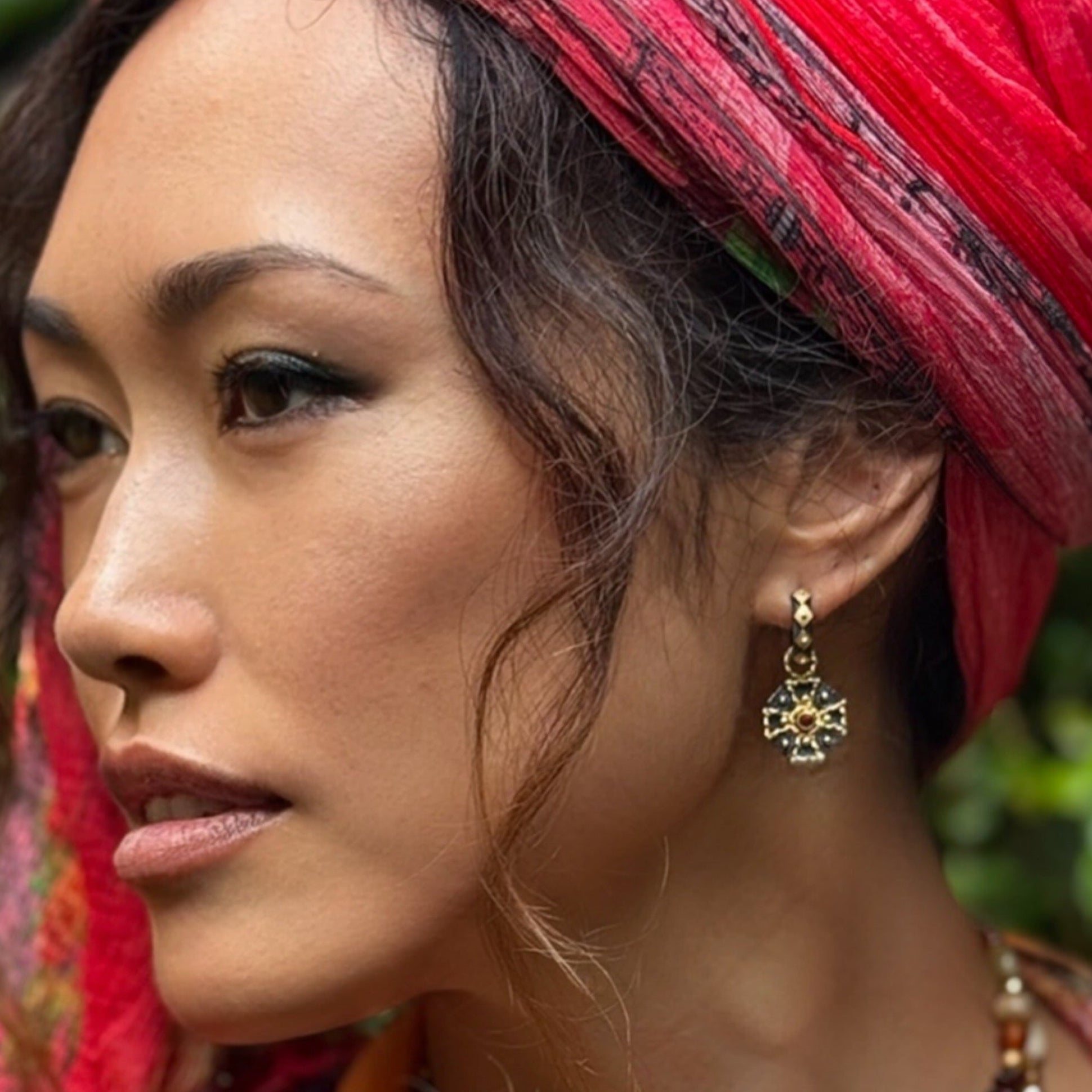 "Maltese Cross" Drops for Hoop Earrings (Blue Sapphire, 22k, 18k Gold, Oxidized Sterling Silver)
