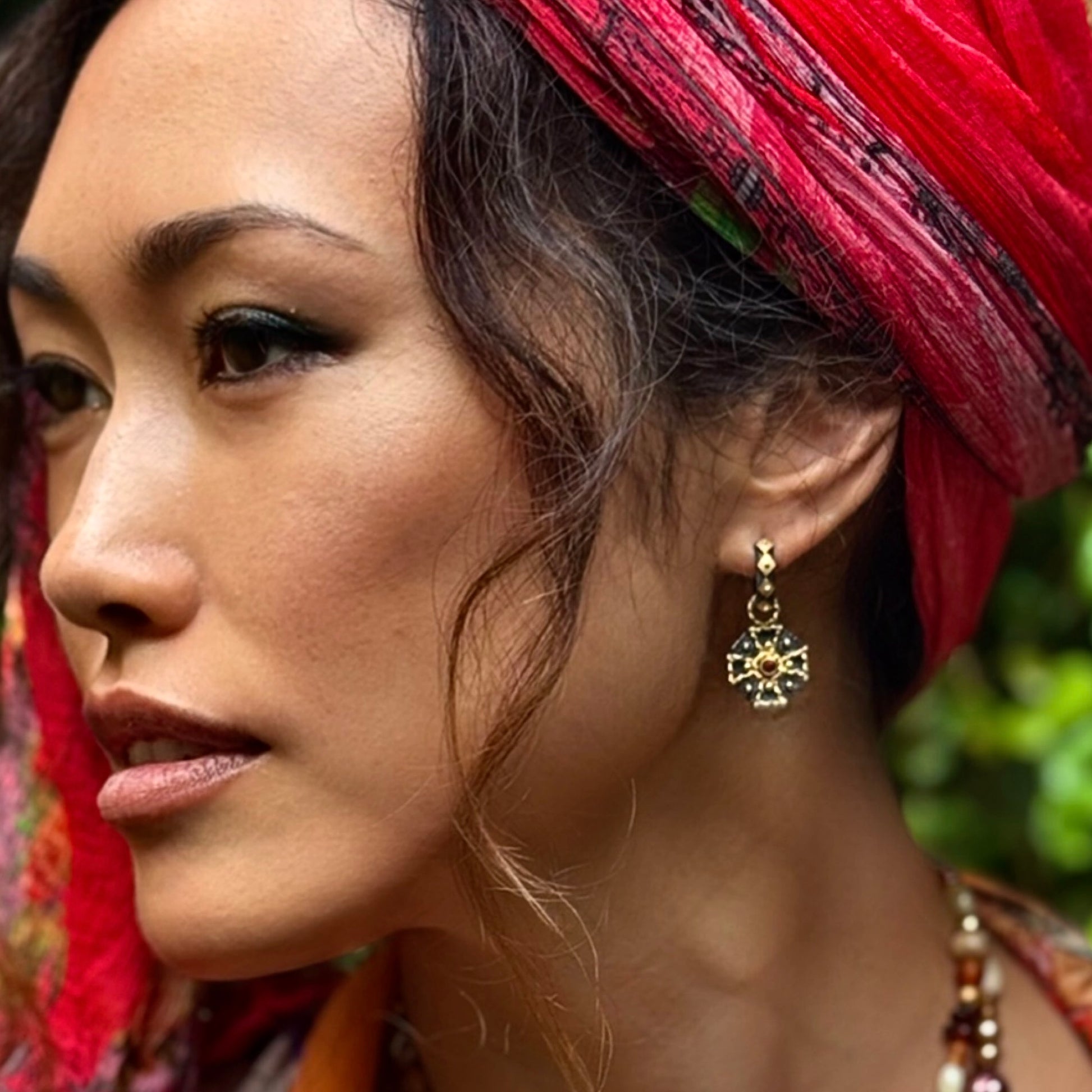 "Maltese Cross" Drops for Hoop Earrings (Red Spinel, 22k, 18k Gold, Oxidized Sterling Silver)