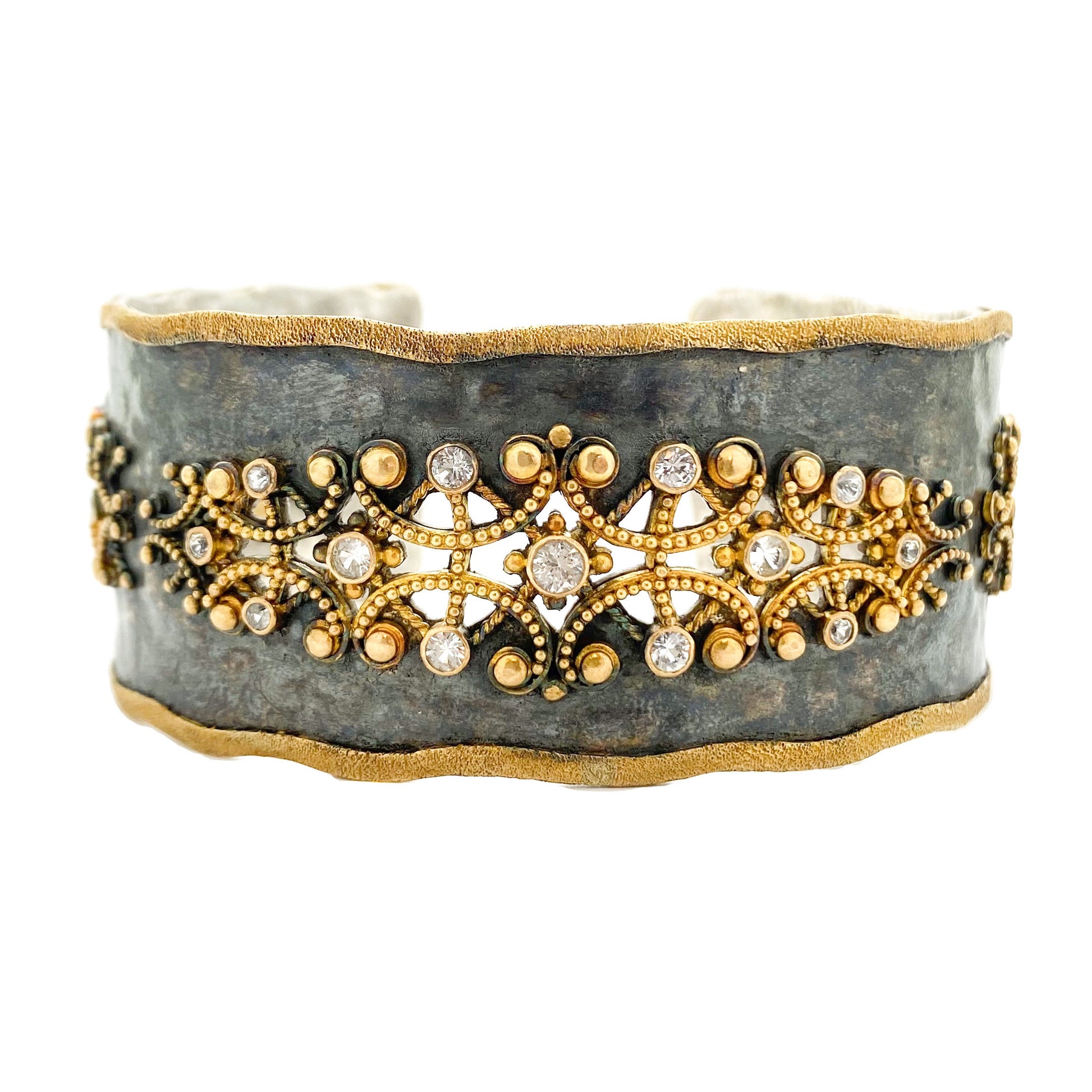 "Dubrovnik" Cuff Bracelet (Diamond, Oxidized Silver, 22k Gold)