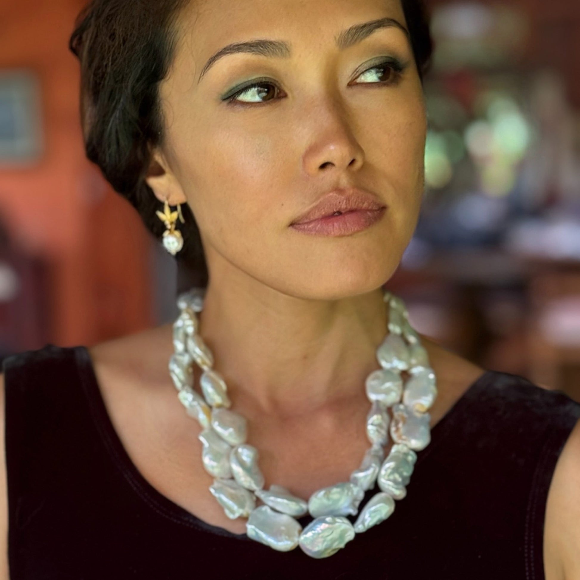 We've combined our "Honey Flower" hook earrings with .10 ct diamond accents with lustrous white freshwater pearl drops capped with 18k gold finials in these petite "Honey Flower Pearl Drop" earrings (sold together). These drops are detachable, so you can wear any other hook earring charms with the tops--check out our colorful selection!