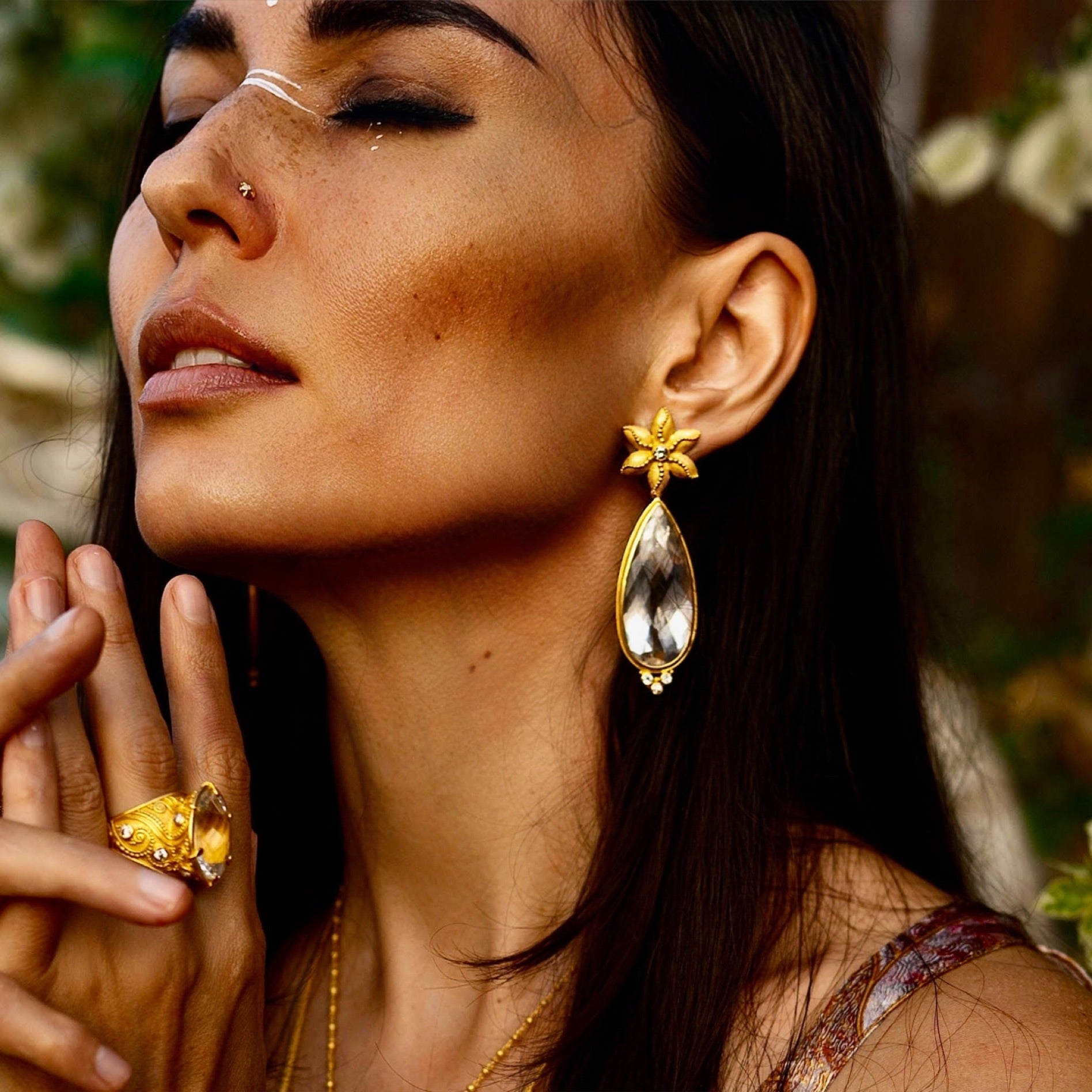 "Flower Button" Earrings (Diamond, 22k, 18k Gold)