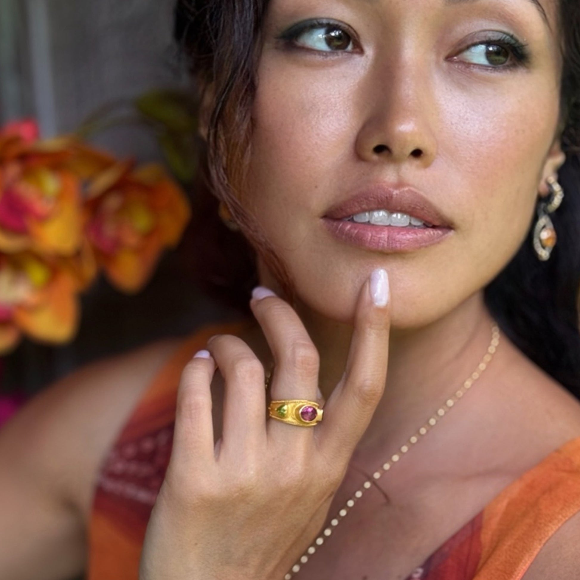 "Herculaneum" Band Ring (Peridot, Rubellite Tourmaline, 22k Gold)