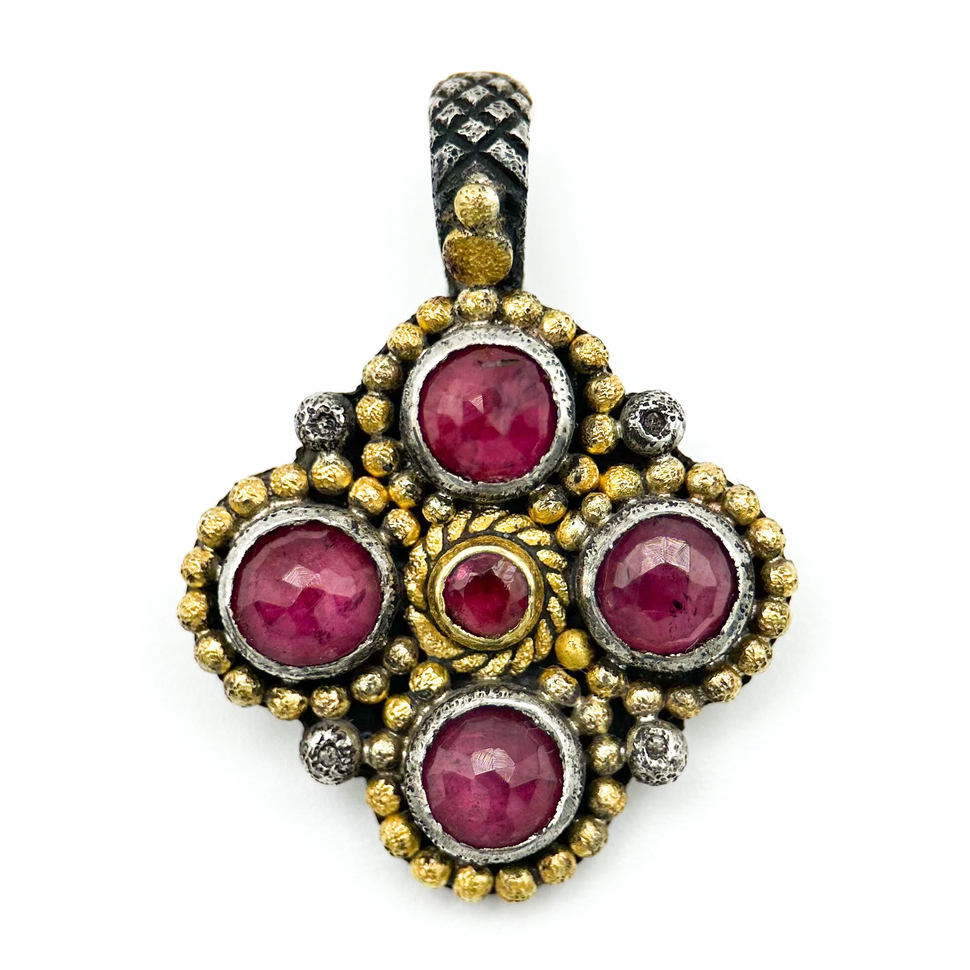 "Mini Maltese" Pendant (Ruby, 22k Gold, Oxidized Sterling Silver)