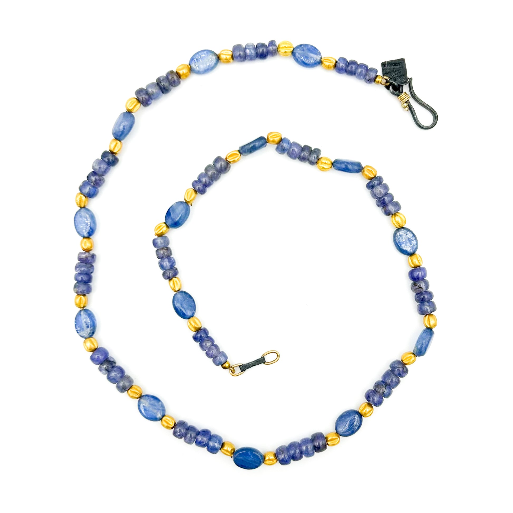 "Lola Blue" Necklace (Tanzanite, Kyanite Beads, 22k, 18k Gold, Oxidized Sterling Silver)