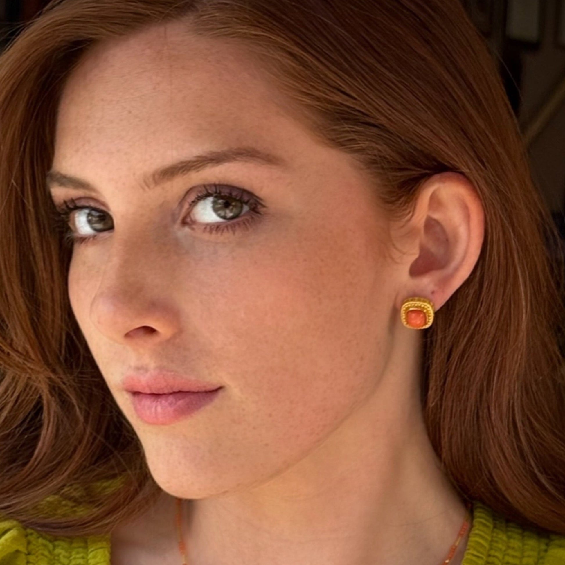 "Sharon" Stud Earrings (Italian Coral, 22k, 18k Gold)