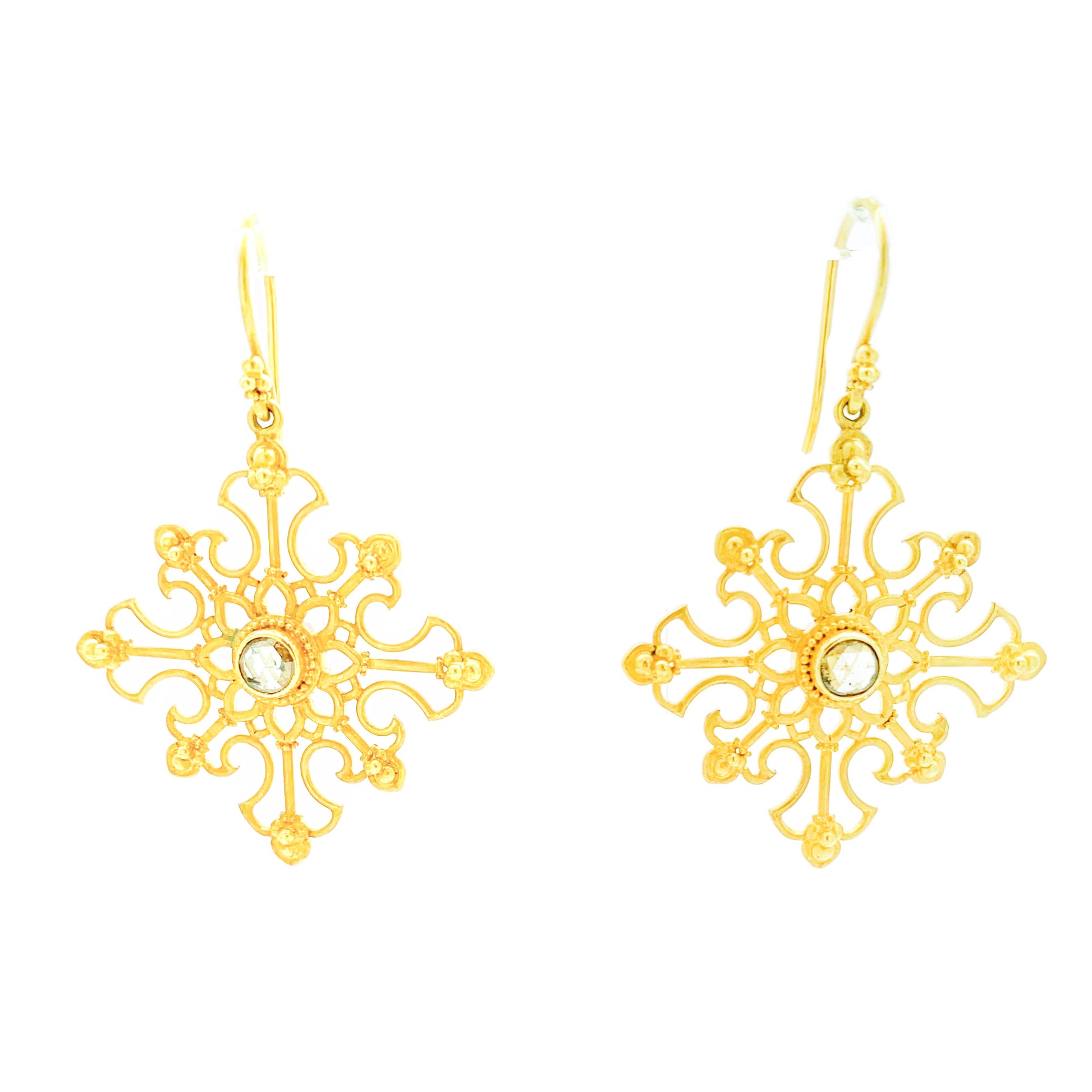 "Snowflake" Hook Earrings (Diamond, 22k and 18k Gold)